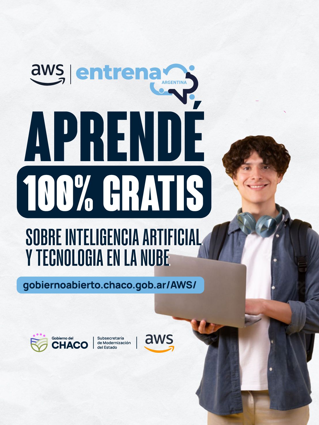 Desde el Gobierno del Chaco, a través de la Subsecretaría de Modernización del Estado, junto a Amazon Web Services (AWS), lanzamos AWS Entrena Argentina, una propuesta de formación 100% gratuita en tecnología en la nube e inteligencia artificial.